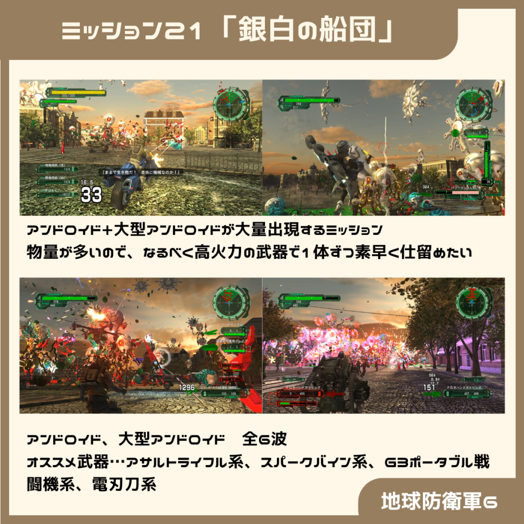 ミッション10~13よりもアンドロイドの数がかなり増えているので、難易度は大きく上がっています。