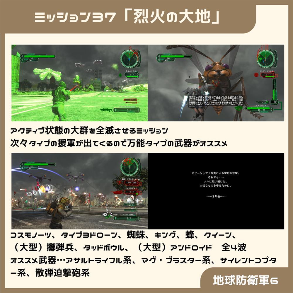 ミッション名の「♰」が増えて6つになったということは、やはりミッション1が「地球防衛軍5」の世界、このミッションが「地球防衛軍6」の世界ということでしょうか。