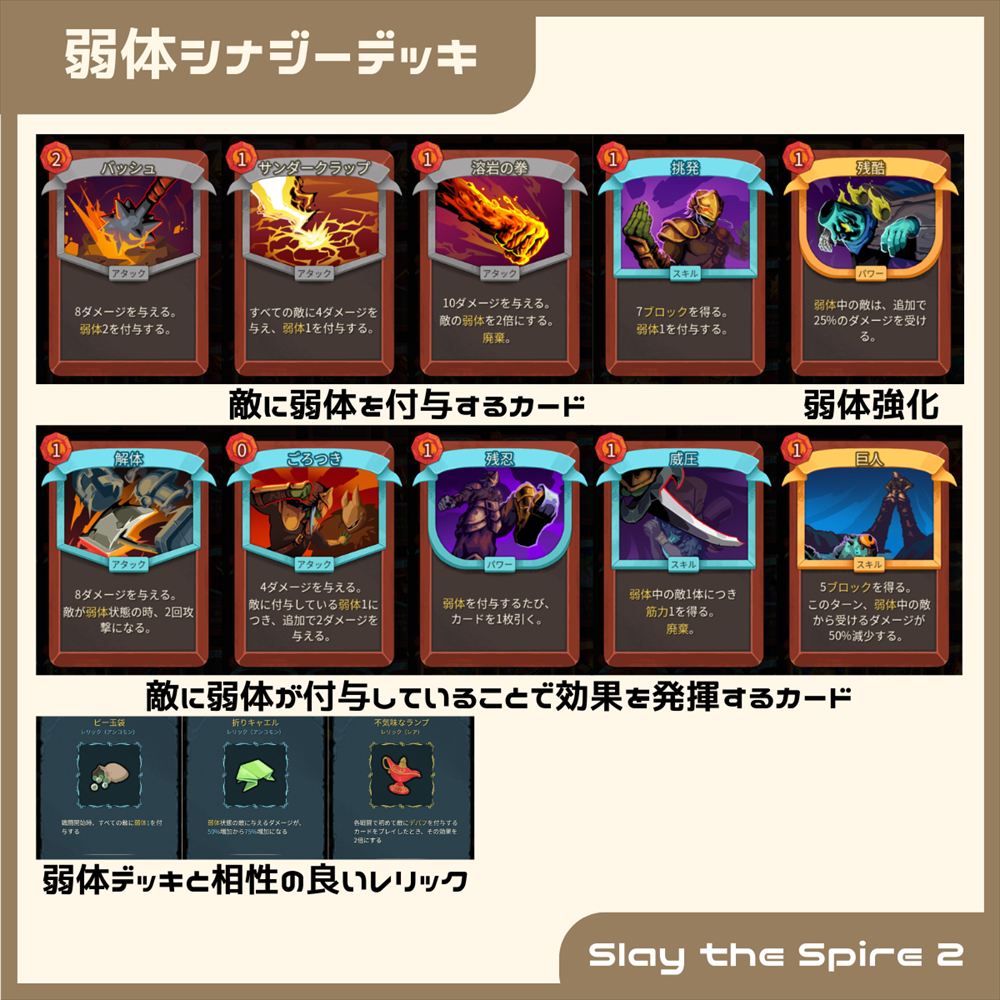 「Slay the Spire 2」から大幅に増えた弱体シナジーを活かしたデッキです。