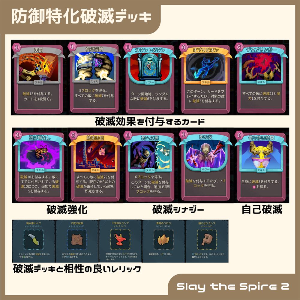 敵を倒す手段を破滅に絞り、防御を固めながら破滅デバフを積み重ねるデッキです。