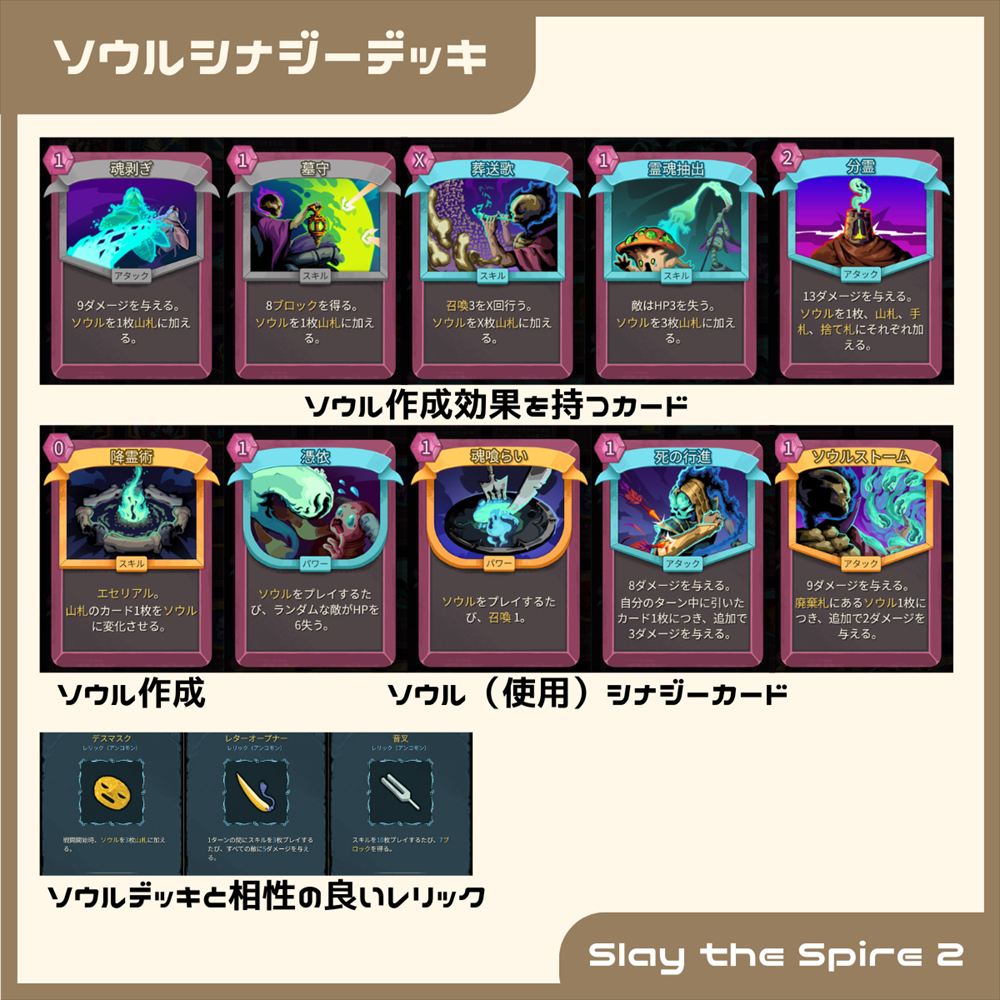 重要なのは以下のような「ソウル」を使用することでシナジーが得られるカードです。